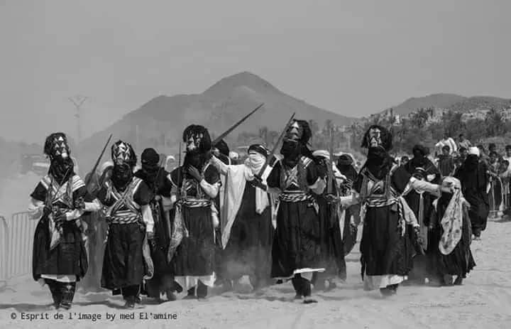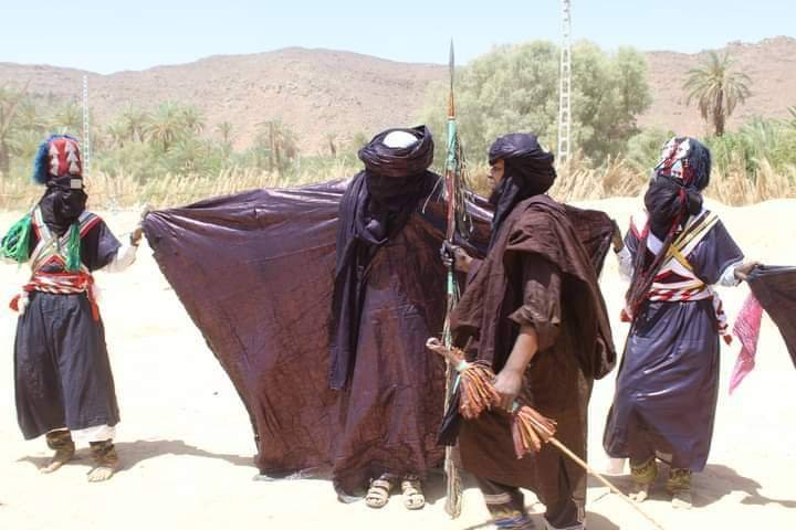 Les festivités et les danses guerrières se déroulent généralement dans le lit de l'oued de Djanet (rivière asséchée), qui sert de scène naturelle bordée de palmiers et de crêtes rocheuses. La fête met en scène une joute rituelle entre les deux communautés historiques de la ville : les habitants du quartier d'El Mihan et ceux de Zelouaz (ou Azellouaz). Durant les nuits précédant le grand jour (qui correspond au 10ème jour de l'Achoura), vous pouvez assister aux préparatifs et aux répétitions nocturnes directement au cœur de ces deux quartiers.