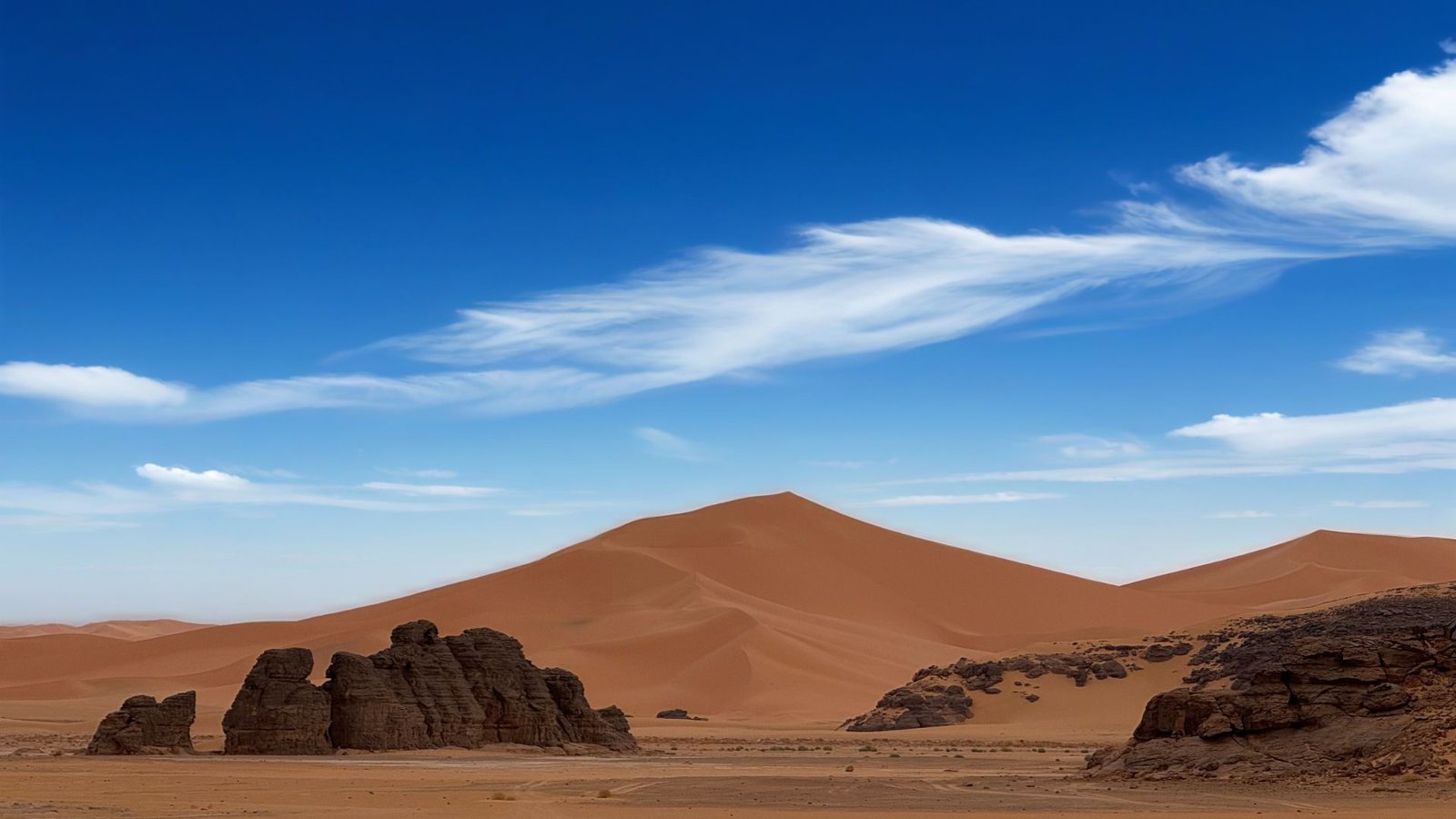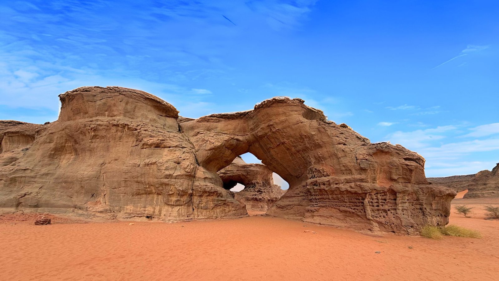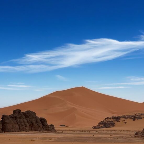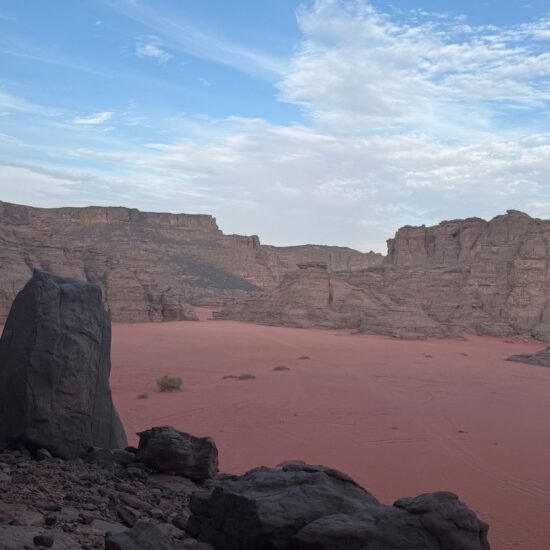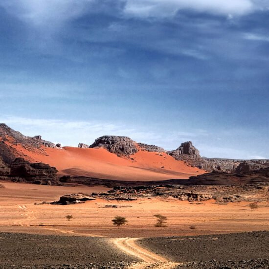 Si le désert avait un cœur, il battrait ici. La Tadrart Rouge est un voyage chromatique où le sable de feu rencontre des cathédrales de grès noir, créant l’un des paysages les plus époustouflants de la planète.